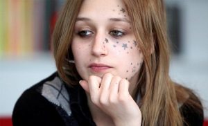 Kimberly Vlaminck, who wanted three stars tattooed on her face and got 56